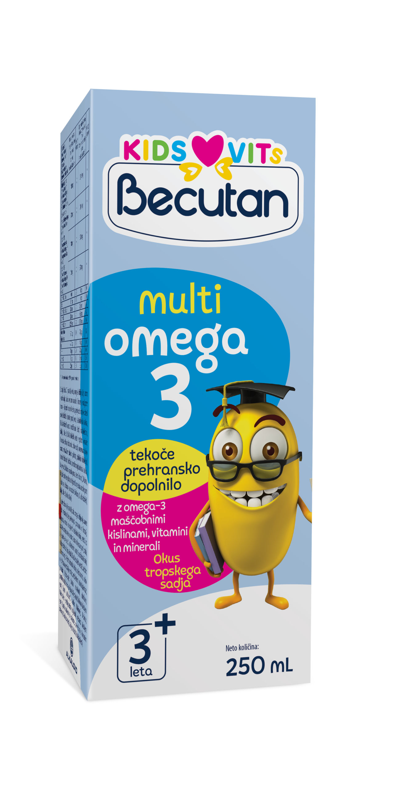 Namen tekočega prehranskega dopolnila Becutan KIDS VITS Multiomega-3 je obogatiti prehrano z omega-3 maščobnimi kislinami in pomembnimi vitamini in minerali.