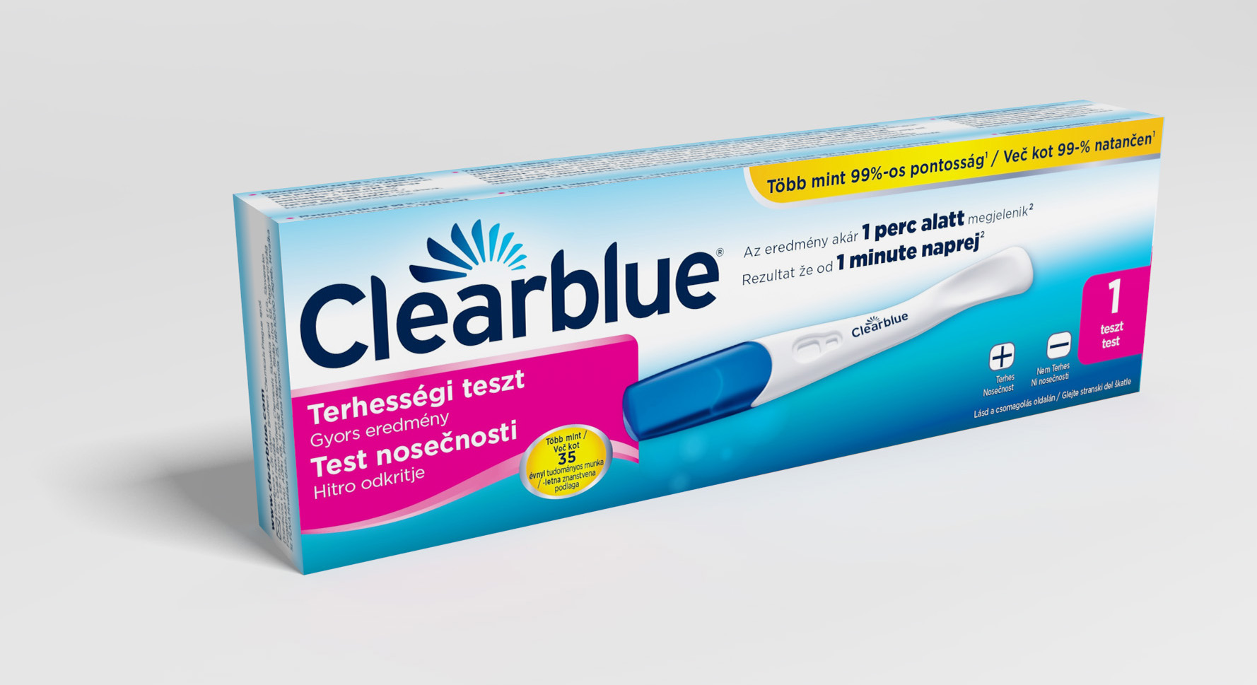 Rezultat »Nosečnost« se lahko prikaže že v 1 minuti, če testirate na dan izostanka menstruacije (to je dan po pričakovani menstruaciji) ali pozneje. Za potrditev rezultata »Ni nosečnosti« ali če testirate že pred izostankom menstruacije, morate počakati polne 3 minute (glejte vprašanje 10).
