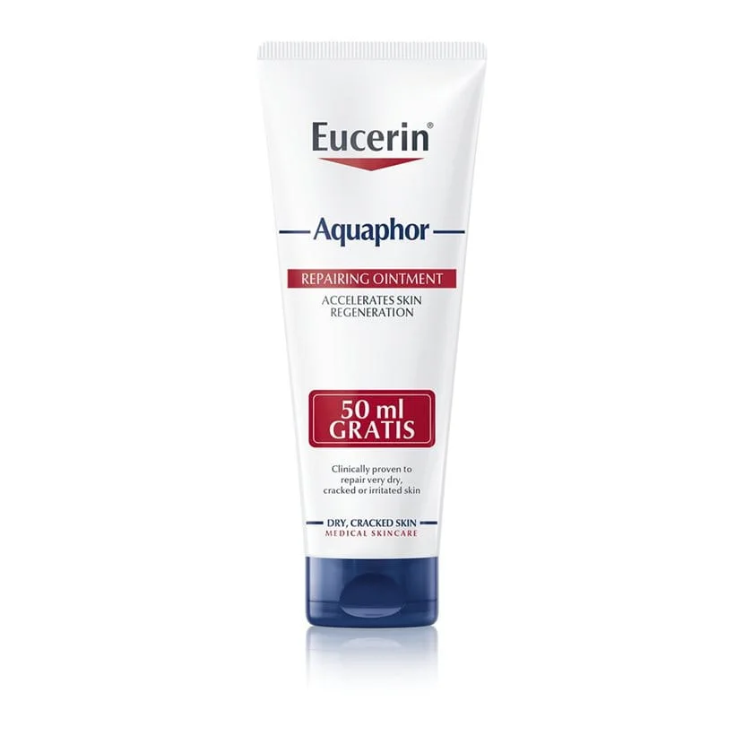 Eucerin Aquaphor obnovitveno mazilo je intenzivno negovalno mazilo za suho do zelo suho, razpokano in razdraženo kožo. Deluje kot prva pomoč za poškodovano kožno bariero ter pomaga koži pri naravnem procesu obnove.