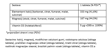 Kalcij in Vitamin D sta potrebna za zdravo rast in vzdrževanje zdravih kosti in zob. Vitamin D prispeva k absorbciji in uporabi kalcija in fosforja ter prispeva k delovanju imunskega sistema in mišic. Magnezij prispeva k delovanju mišic in živčnega sistema, prispeva k zmanjševanju utrujenosti in izčrpanosti ter prispeva k ravnotežju elektrolitov.
