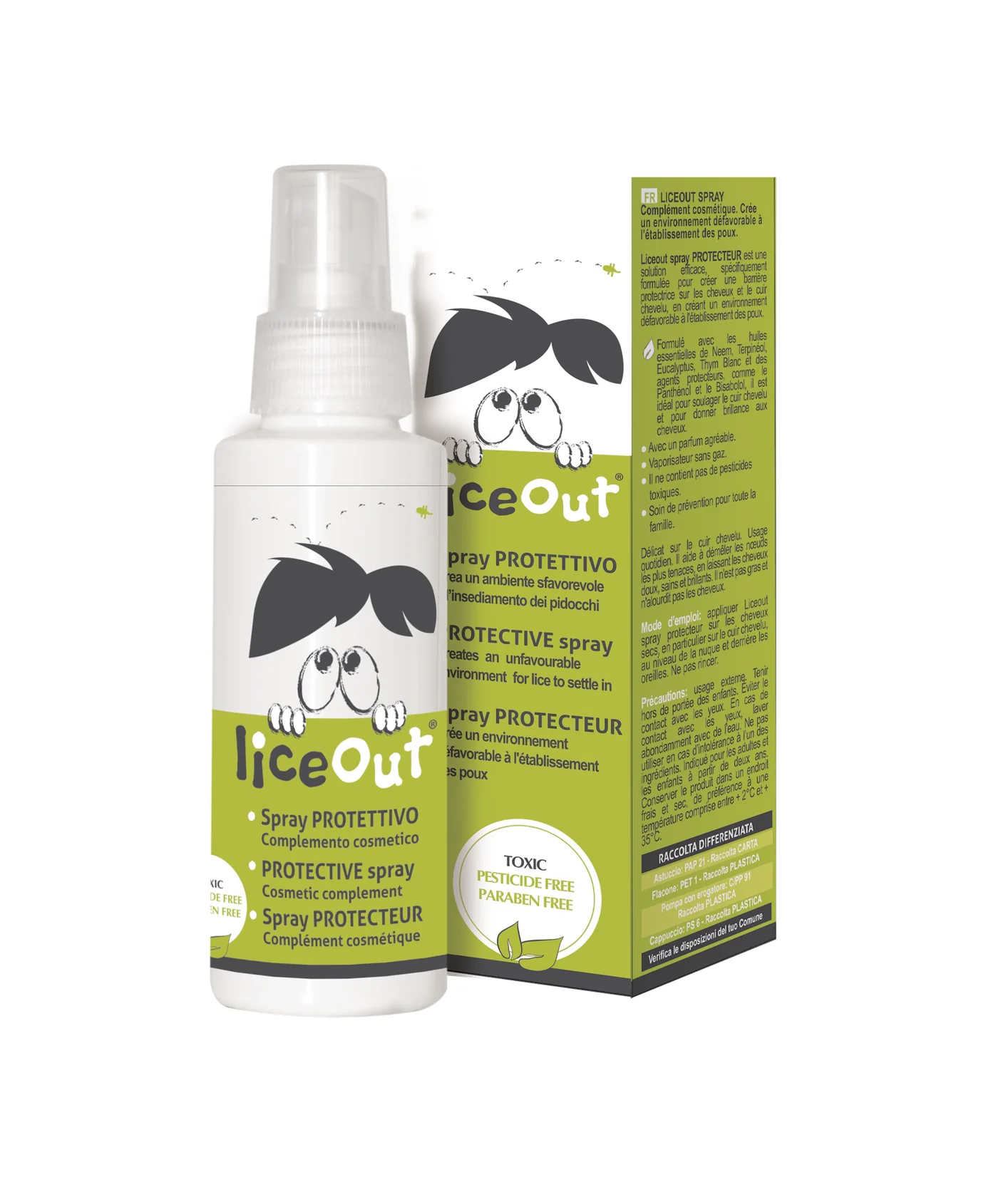 Liceout ZAŠČITNO pršilo je učinkovita rešitev, posebej proizvedeno za nastanek zaščitnega in vlažilnega filma na laseh in lasišču. Ta film ustvarja neugodno okolje za naselitev uši.