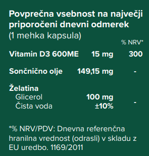 PREHRANSKO DOPOLNILO, KI VSEBUJE VITAMIN D (600 IE)