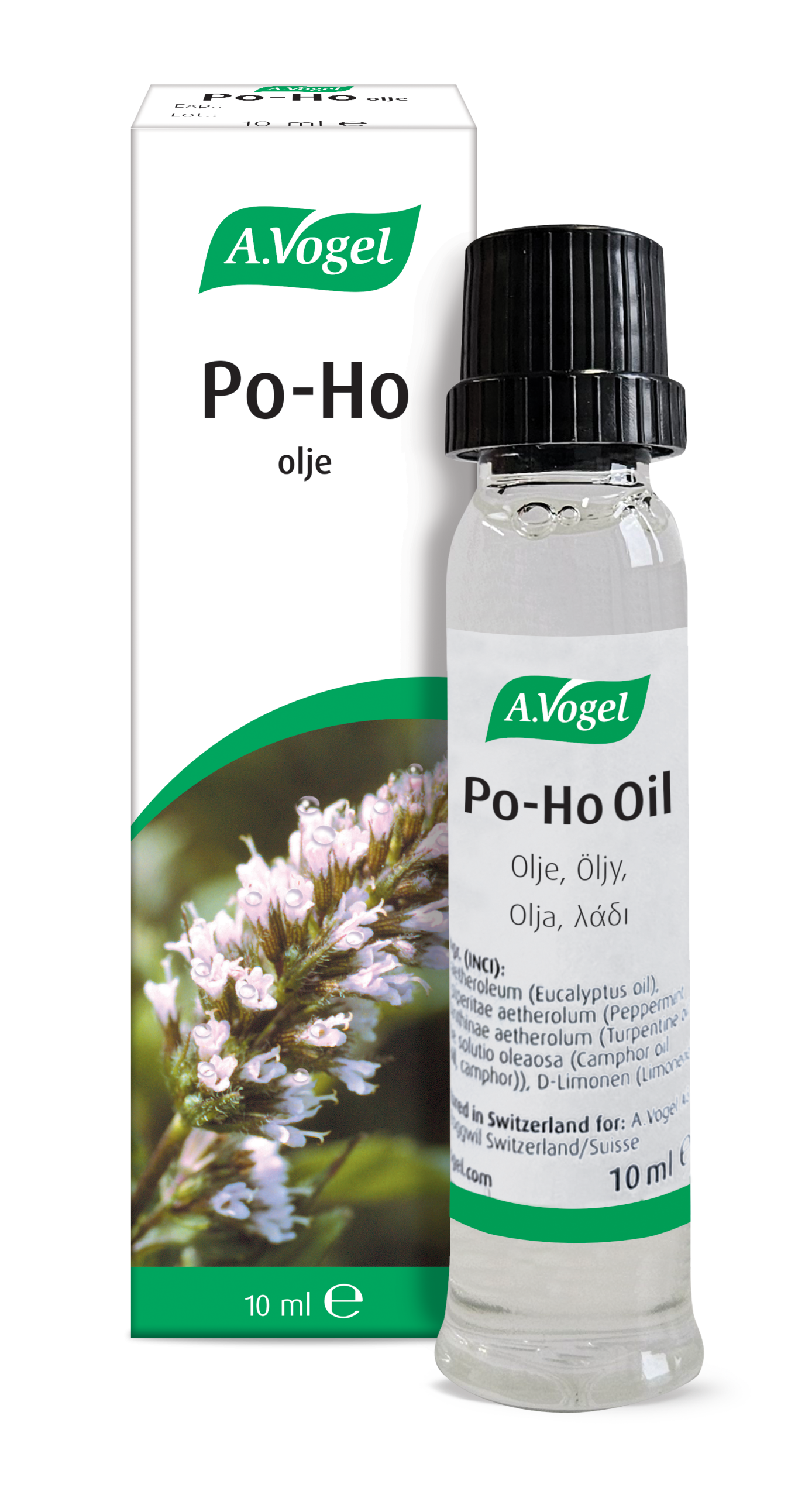 Olje Po-Ho je naravni rastlinski pripravek, izdelan po originalnem receptu Alfreda Vogla, pionirja naravnega zdravljenja. Vsebuje eterična olja poprove mete, evkaliptusa, navadnega brina, kumine in navadnega komarčka. Uporablja se za vtiranje in masiranje kože, kjer pospeši prekrvavitev in osveži, še posebej po fizičnih naporih. Nekaj kapljic nanesite na konico prsta in vtrite na želeno mesto. Olje je primerno tudi kot dodatek za parne kopeli obraza, kjer ga lahko uporabite skupaj z inhalatorjem Po-Ho.