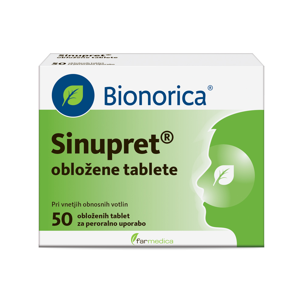 Tablete Sinupret zmanjšajo oteklino vnete nosne sluznice, razredčijo sluz, izboljšajo drenažo sinusov in s tem olajšajo izločanje oz. izkašljevanje sluzi. Zmanjša se občutek zamašenega nosu in spremljajoči glavobol kmalu preneha. Tablete Sinupret obenem pomagajo pri regeneraciji sluznice. Uporabljamo jih lahko kot spremljevalno zdravilo pri protivnetnem zdravljenju zgornjih dihalnih poti, tudi ko že jemljemo antibiotike.