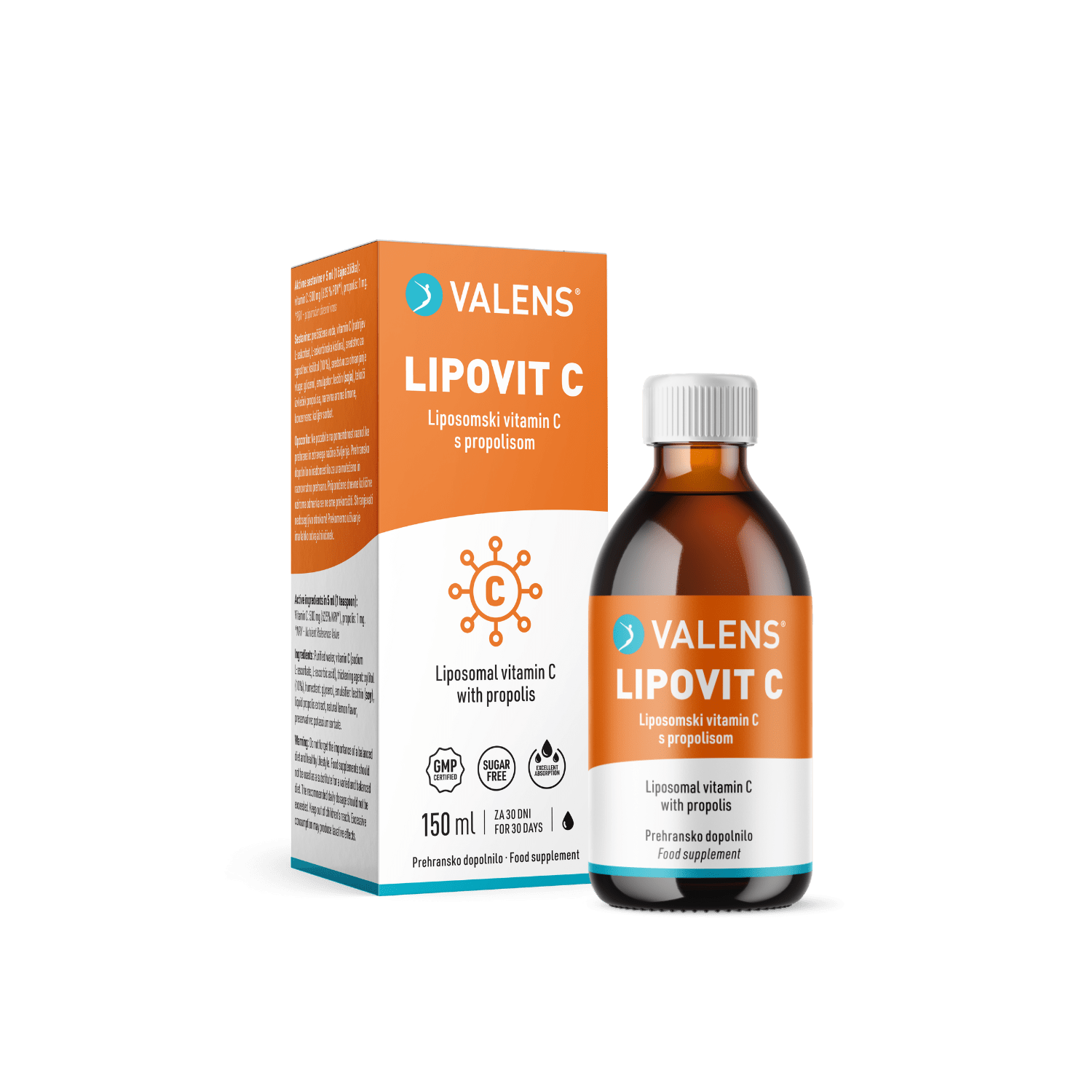 Valens Lipovit C je prehransko dopolnilo s prijetnim okusom limone in visokim odmerkom vitamina C, ki prispeva k delovanju imunskega sistema, zaščiti celic pred oksidativnim stresom, zmanjševanju utrujenosti in izčrpanosti ter k boljši absorpciji železa. Izdelek vsebuje liposomsko obliko vitamina C, ki se dobro absorbira, obogaten pa je še s propolisom.